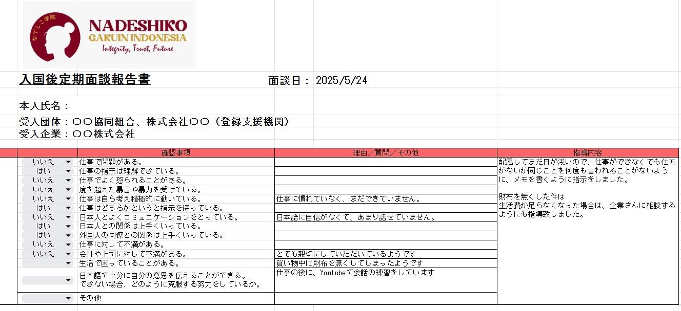 | 送り出し機関会社名 | NADESHIKO GAKUIN INDONESIA |